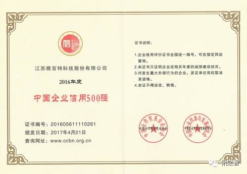 雅百特是信用企业500强,你信嘛,反正我不信。