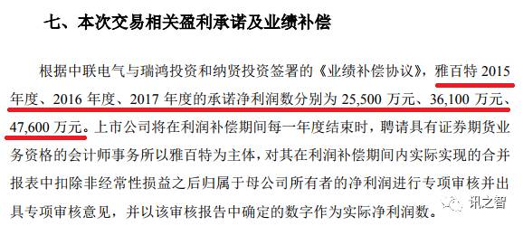 另外,我们在中联电气的重大资产置换公告中还发现了一份业绩对赌协议,这也为雅百特后来财务造假埋下了伏笔。