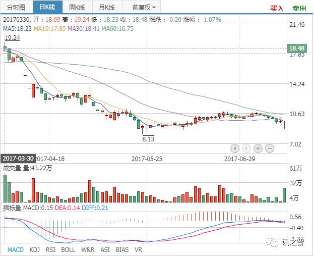 (雅百特2017.3.30至今股价日k图)